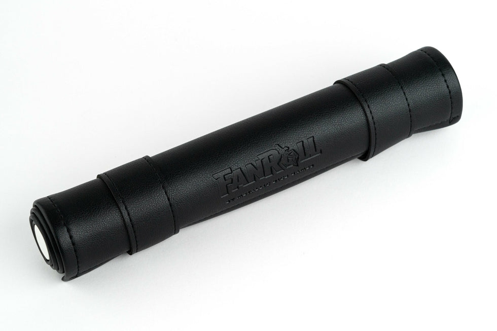 Fanroll's scroll rolling mat appears to be a rolled up leather scroll, but unwinds into a soft rolling mat for your dice. The secret zipper compartment holds all your favorite dice.