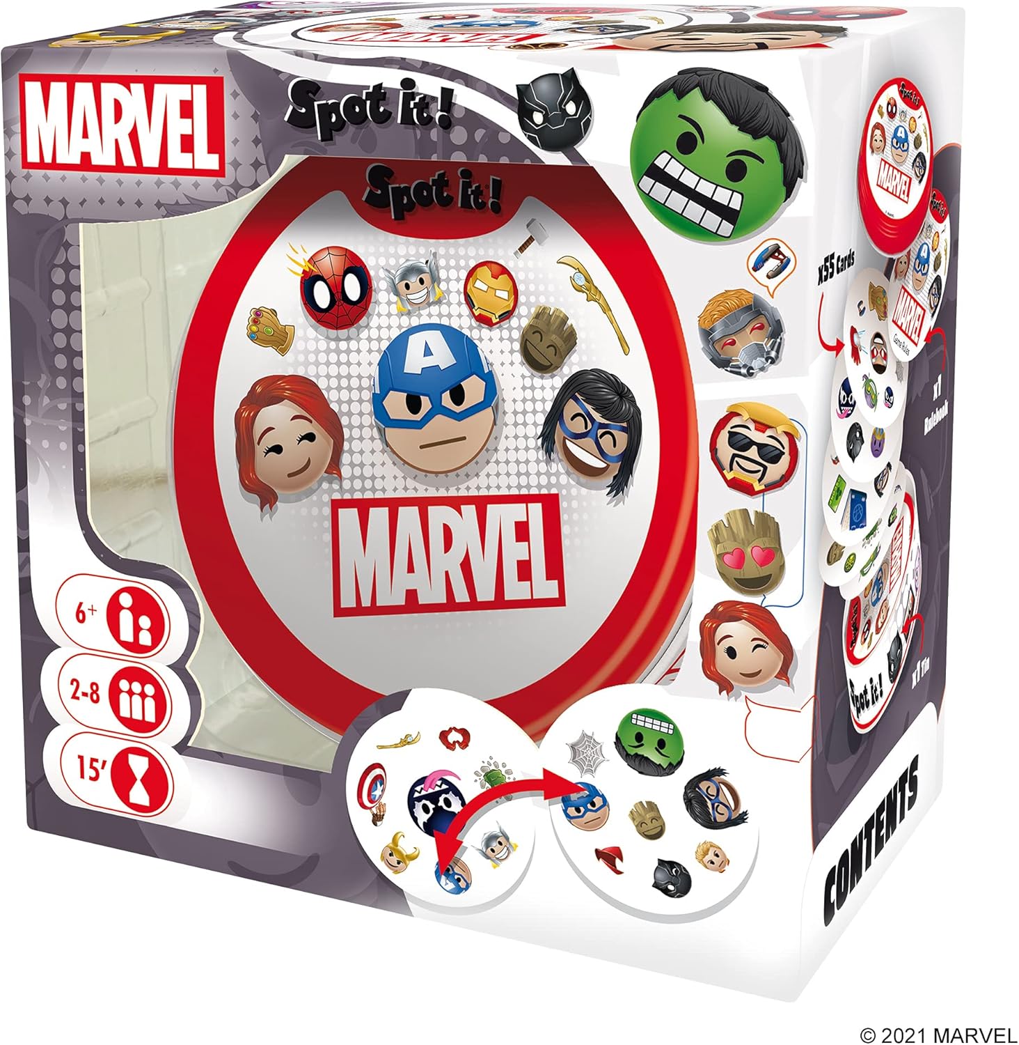 Now children can spot their favourite Marvel characters in this new release of this special Marvel edition of the classic Spot It game! This fast-paced fun family game of observation and quick reflexes is ideal for players aged 6 and up.