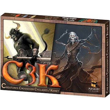 C3K; which stands for Creatures Crossover Cyclades/Kemet; is a mini-expansion that contains seven cards for Cyclades and six power tiles for Kemet. These components allow you to use the creatures from Cyclades (and the Cyclades: Hades expansion) in Kemet and the creatures from Kemet in Cyclades.