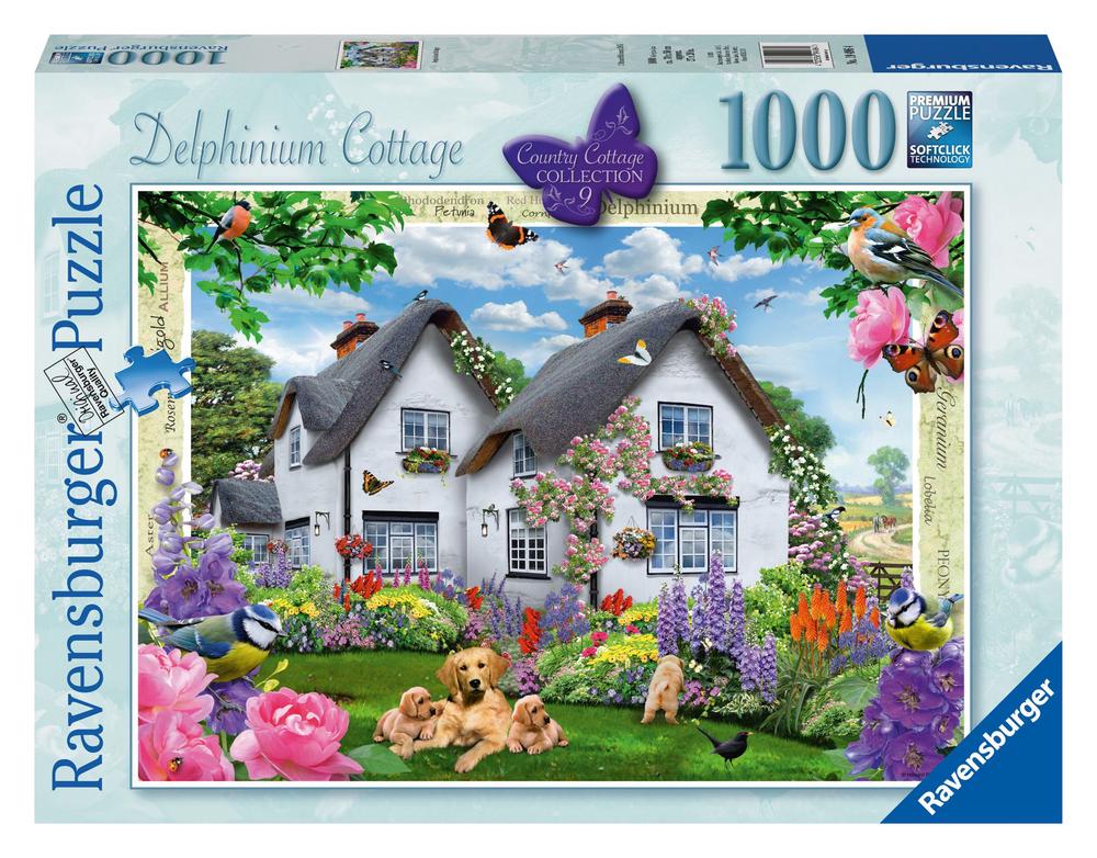 Inspire little ones’ creativity and provide them with a fun activity to do indoors with the Ravensburger 1000-Piece Delphinium Country Cottage Puzzle.